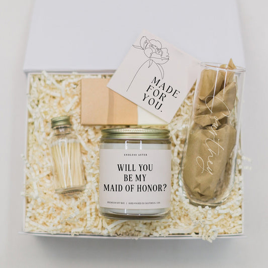 Will You Be My Maid of Honor Candle & Flute Gift Box