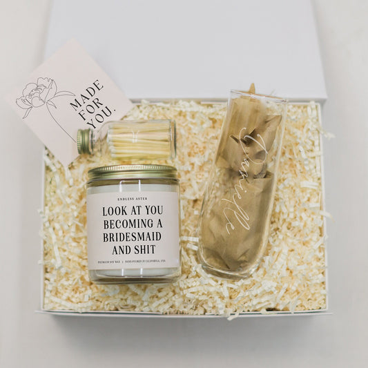Look At You Becoming A Bridesmaid and Shit Candle & Flute Gift Box
