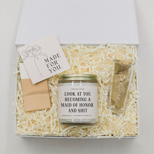 Look At You Becoming A Maid of Honor And Shit Candle & Shot Glass Gift Box