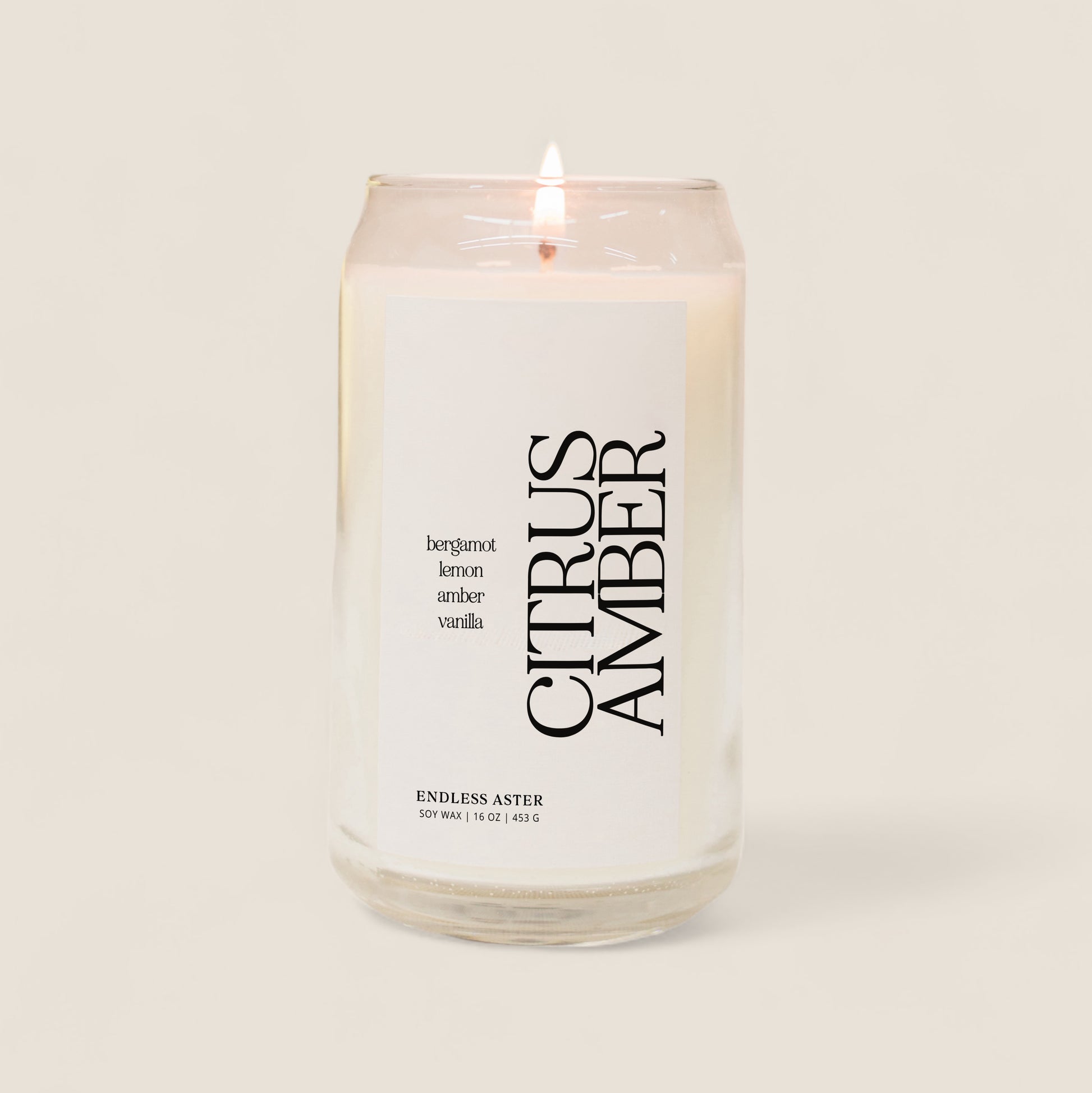 With its sleek design, clear glass jar, and simple label, this candle looks great in any room. Whether you’re starting your day or winding down, the Citrus Amber candle fills your space with a bright and comforting aroma.