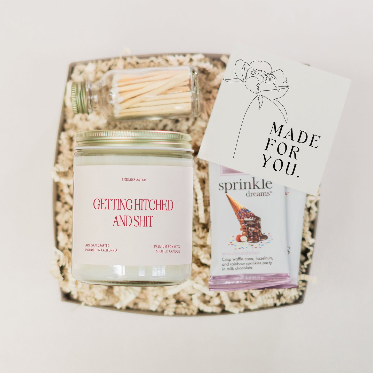 Pick from a variety of romantic and festive scents that evoke joy and celebration. It’s the ideal gift for bridal showers, engagement parties, or just to cheer on the bride or groom-to-be. Want to make it even more special? Add a delicious chocolate bar & matches or a cozy tea set.