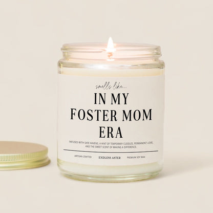 A candle for the amazing foster moms. Our 'In My Foster Mom Era' candle is like a warm hug in a jar. Infused with safe havens, a hint of temporary cuddles, permanent love, and the sweet scent of making a difference.