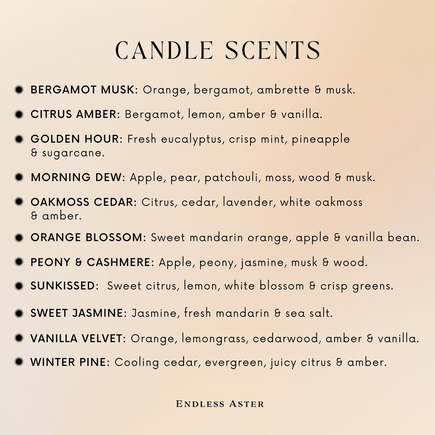 ORANGE BLOSSOM: Sweet mandarin orange, apple & vanilla bean.