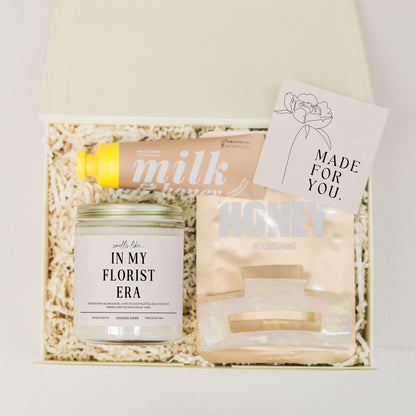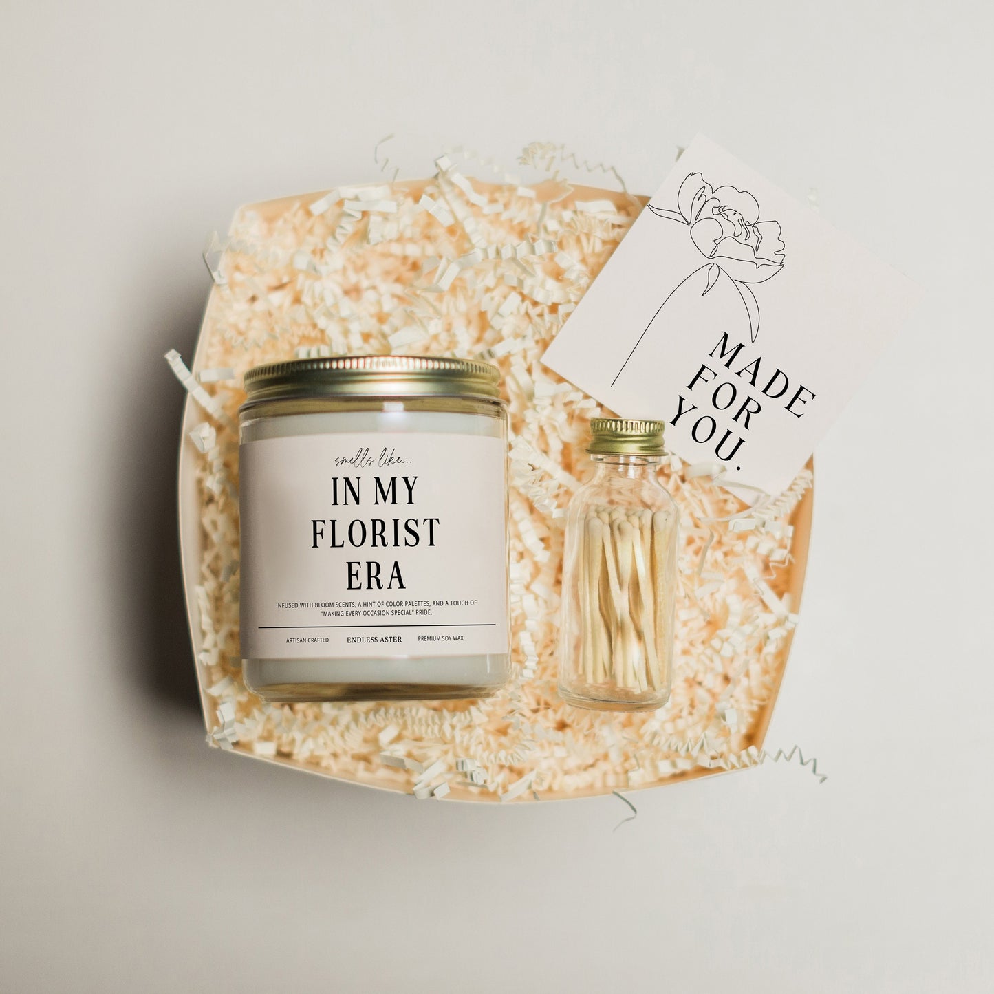 A candle for those with a green thumb and a love for blooms. Our 'In My Florist Era' candle captures the heart of floral artistry. Infused with bloom scents, a hint of color palettes, and a touch of 'making every occasion special' pride, it's a celebration of all things floral.