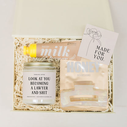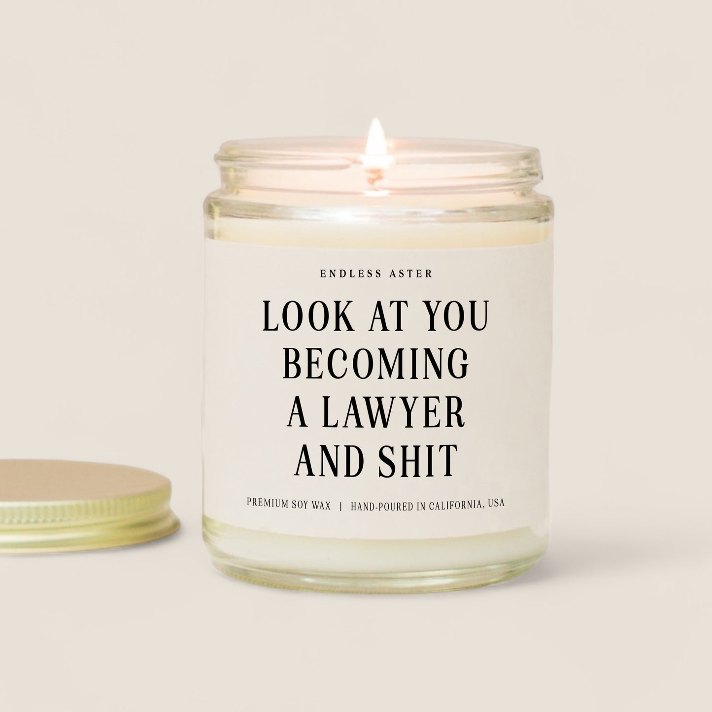 What better way to show someone how proud you are of their accomplishments than with a candle that celebrates their new status in life? This "Look at You Becoming a Lawyer and Shit" Candle is the perfect gift for any soon-to-be lawyer in your life. Featuring a fun modern design & delightful scent, this candle is sure to bring a smile to their face. So whether you're looking for a unique graduation gift or just want to show someone how much you support their dreams, this candle is the perfect way to do it. Add on safety matches and a delicious chocolate bar or a cozy tea set for an extra special touch.