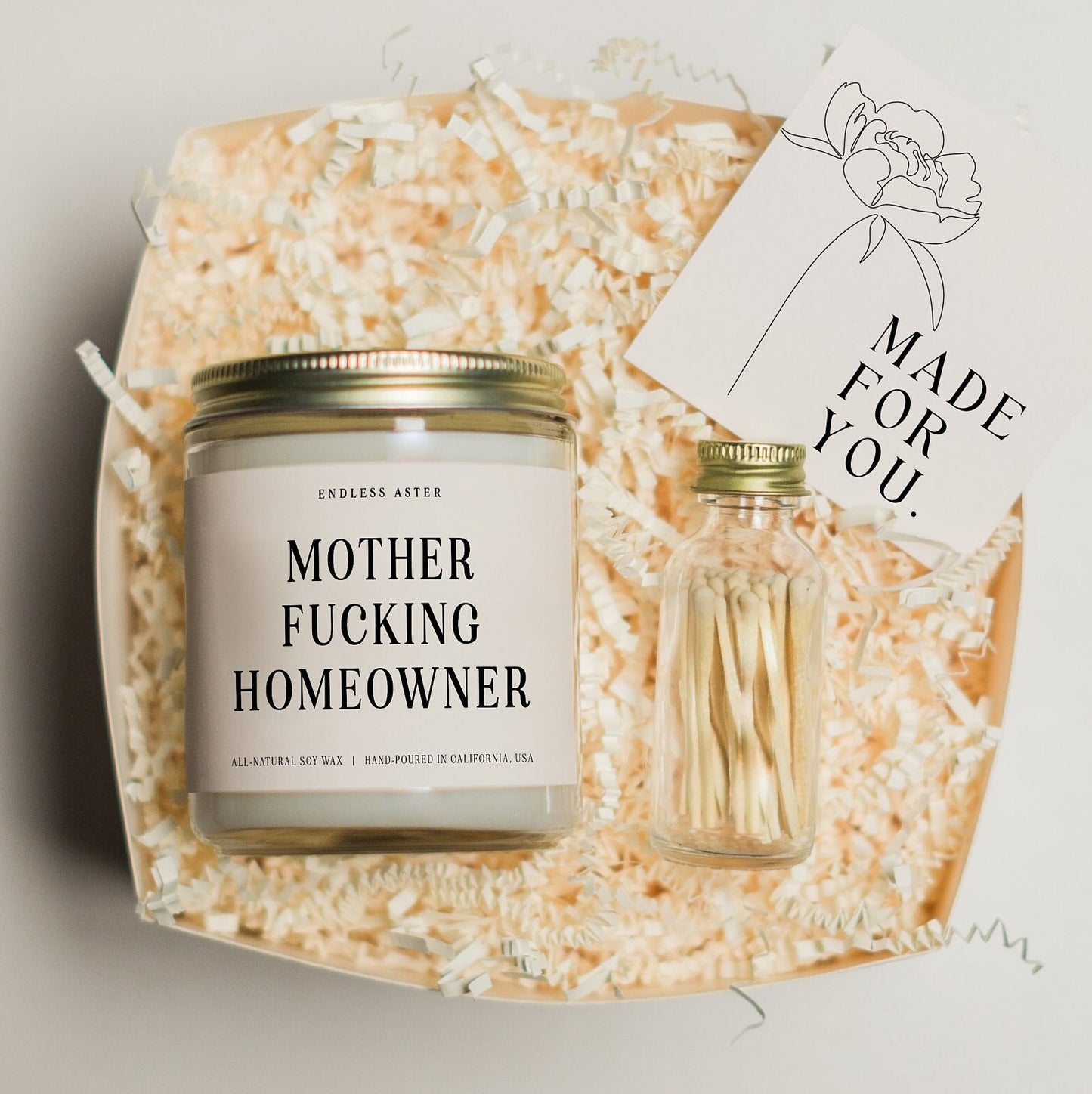If you're looking for a gift that's sure to get a laugh, look no further than this candle. This fun candle is the perfect gift to congratulate a friend or loved ones on their new home. Whether it's a housewarming gift or simply to add some fun to everyday life, this 'MOTHER FUCKING HOMEOWNER' candle is sure to bring a smile to his or her face.