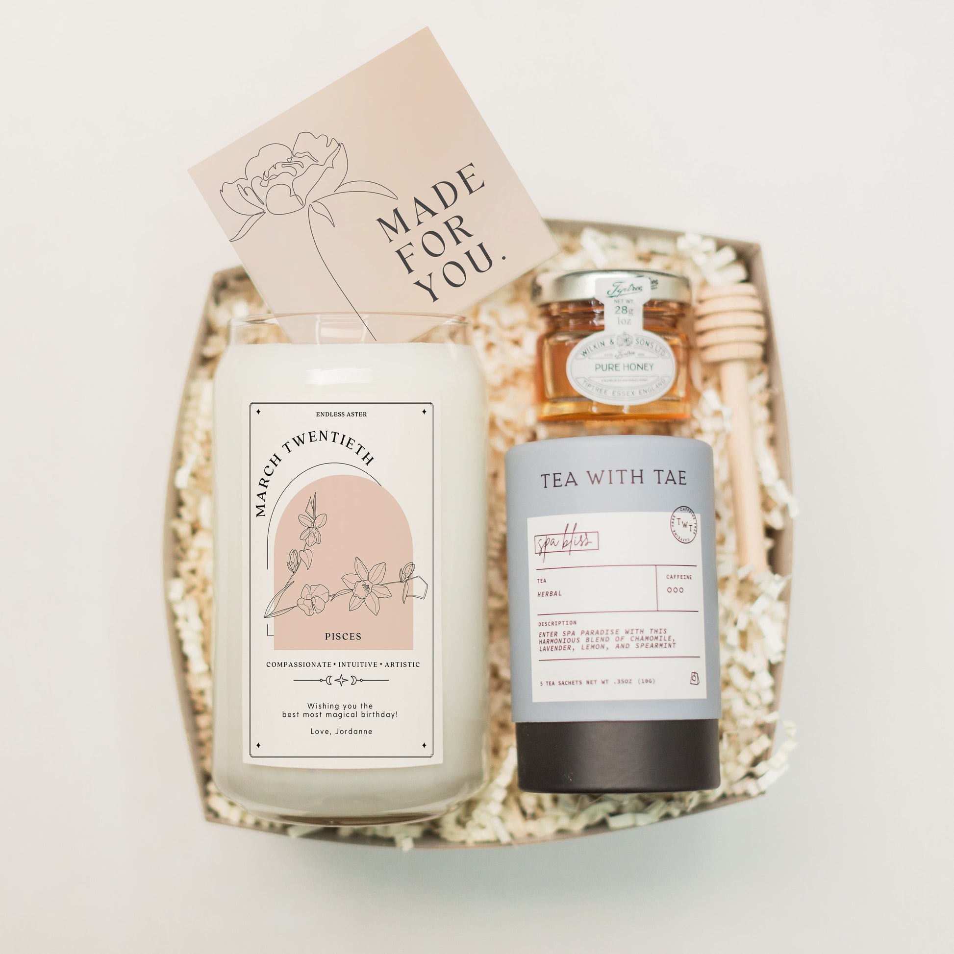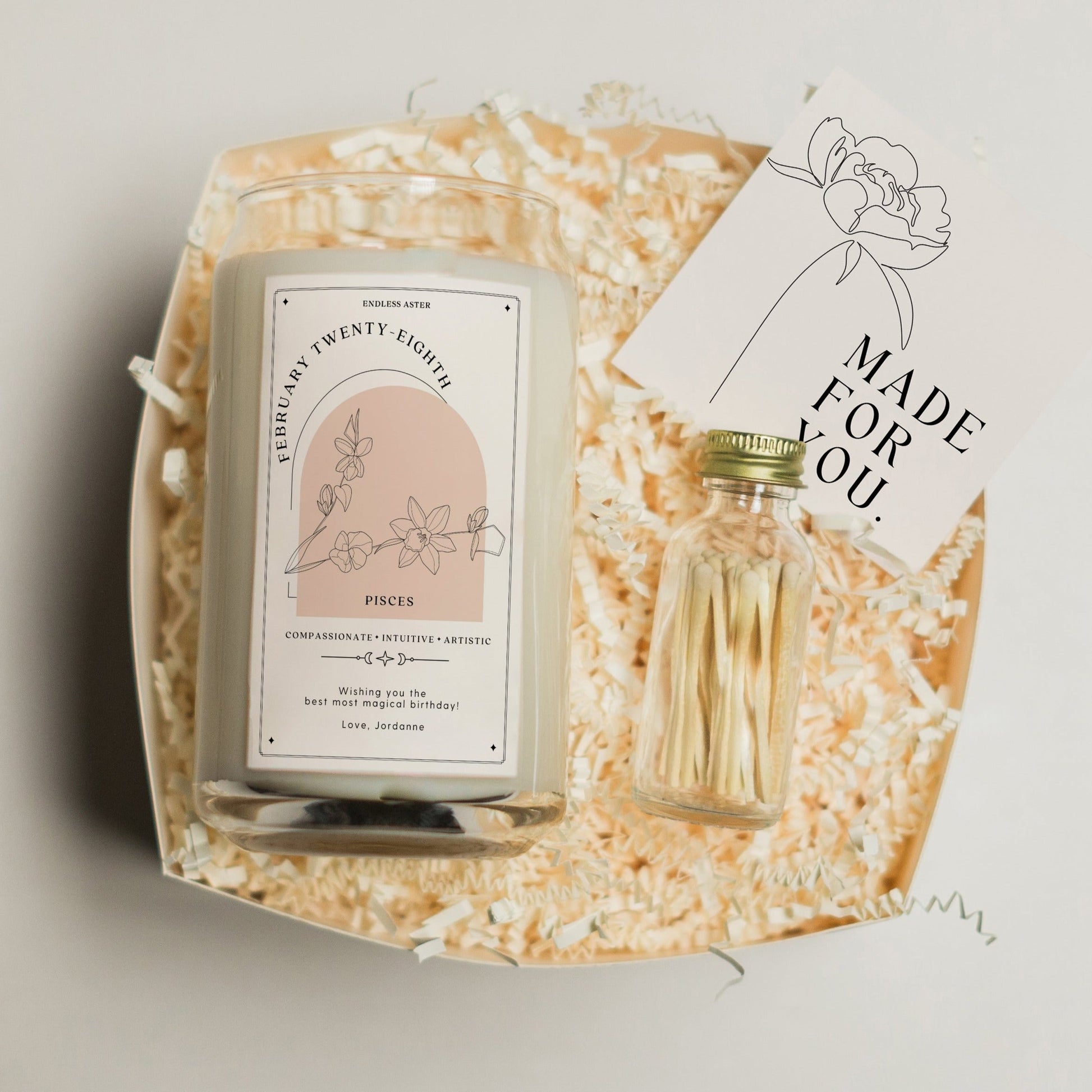 Send the most thoughtful birthday gift to your favorite Pisces (February 19 - March 20) with this personalized candle featuring her birthdate, birth flower in her zodiac sign and a sweet message from you. Sure to put a smile on her face, this candle is perfect for the woman who has everything! Add matches & a chocolate bar or a cozy tea set for an extra special touch.