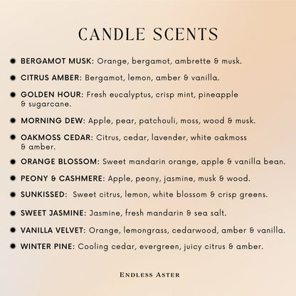 CITRUS AMBER: Bergamot, lemon, amber & vanilla.
