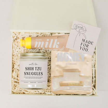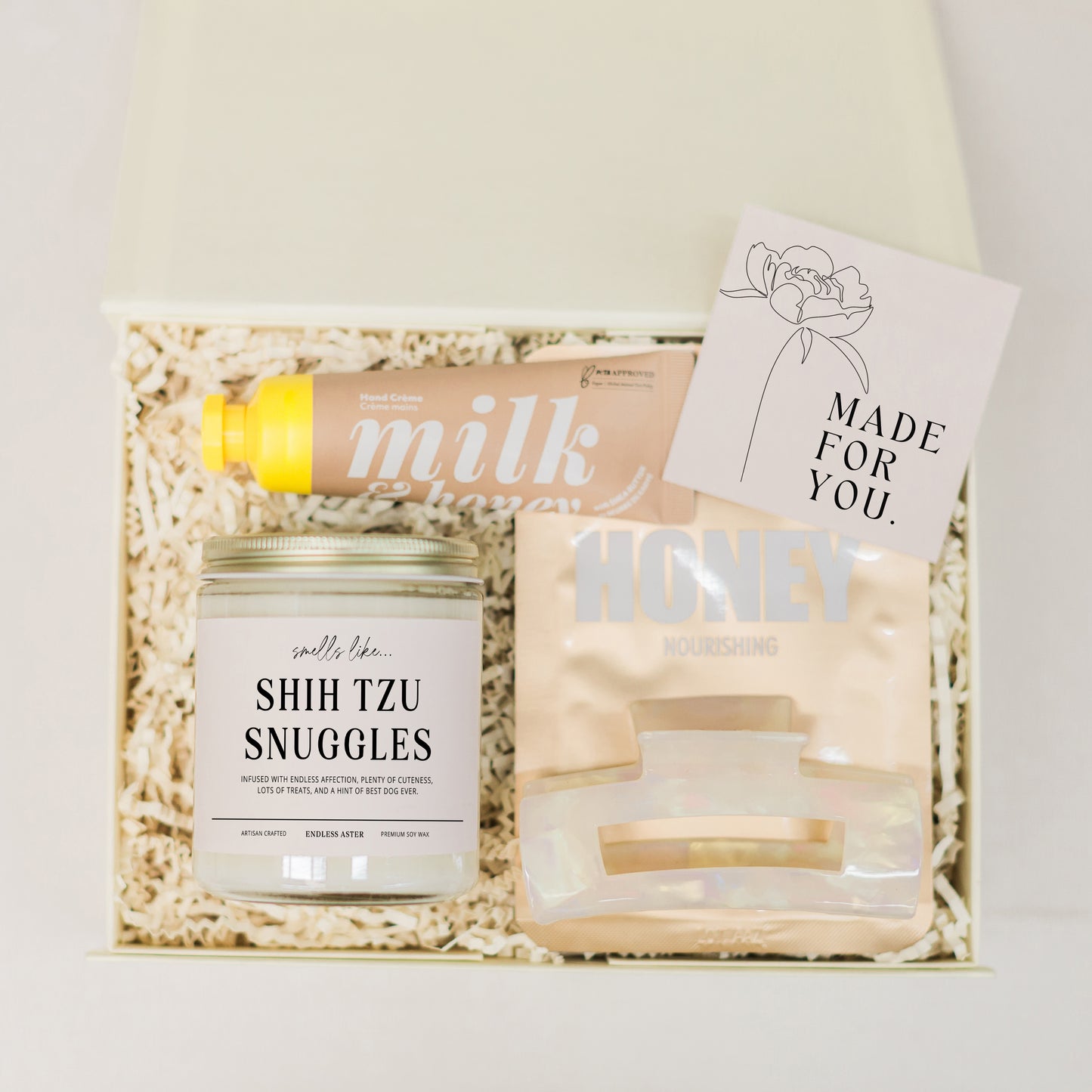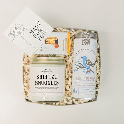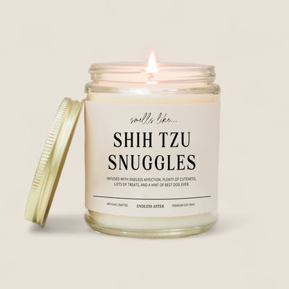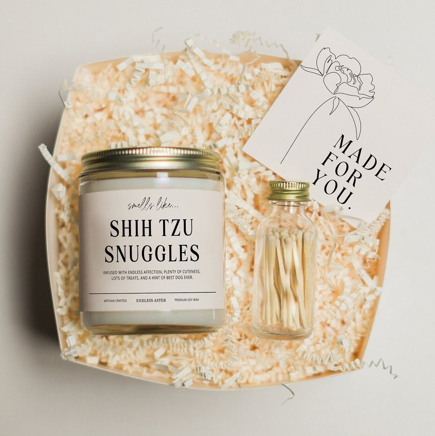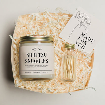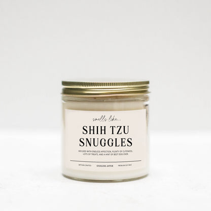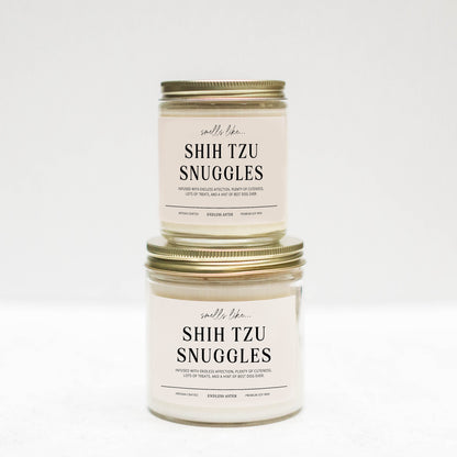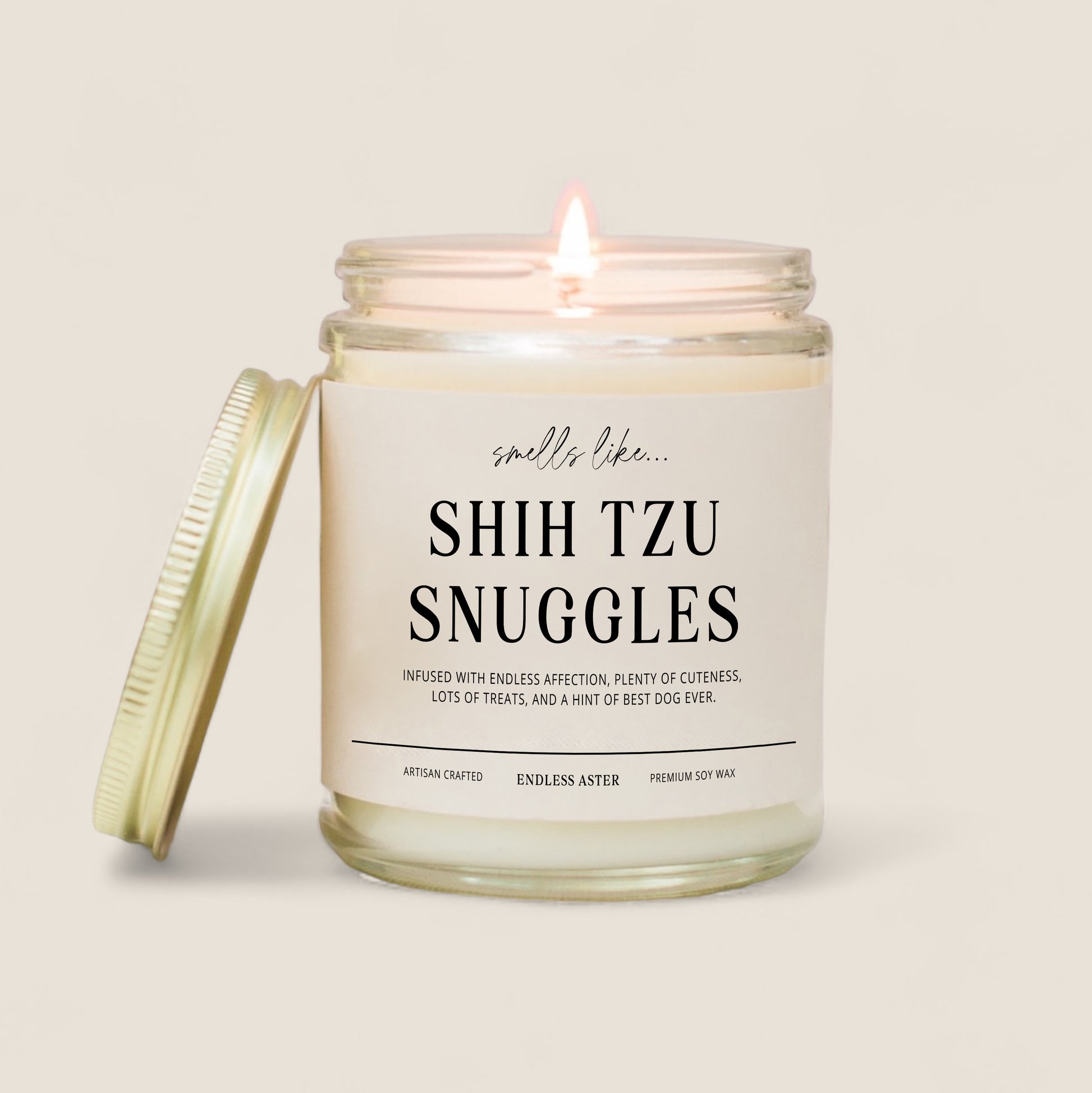 Fall in love with our "Smells Like Shih Tzu Snuggles" candle, where the essence of endless affection, plenty of cuteness, lots of treats, and a hint of best dog ever meets delightful scents. Wrap yourself in the warm, inviting ambiance it creates, evoking fond memories of snuggling up with your furry friend.