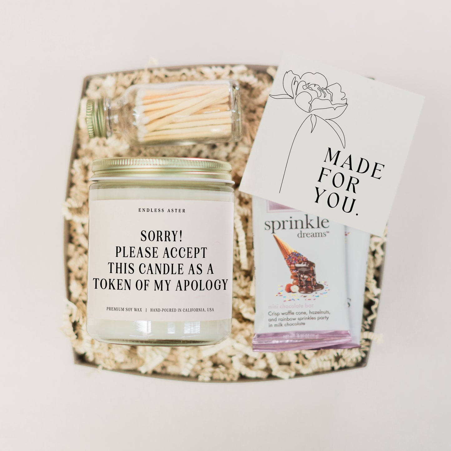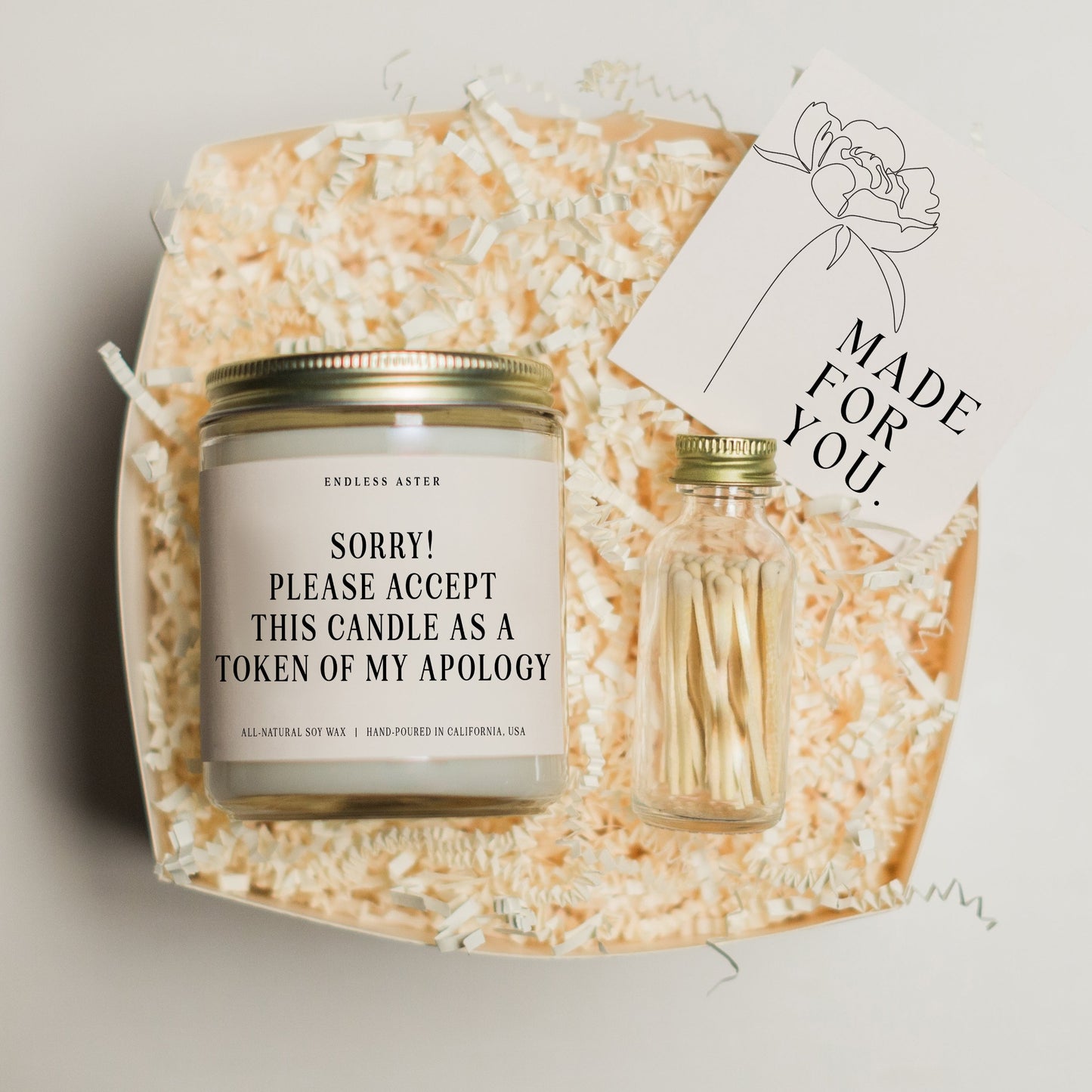Are you in need of the perfect way to apologize? Look no further than this "SORRY! PLEASE ACCEPT THIS CANDLE AS A TOKEN OF MY APOLOGY" candle. This funny candle is the perfect way to say I'm sorry in a fun and heartfelt way and is sure to bring a smile to his or her face. Add safety matches and a delicious chocolate bar or a cozy tea set for an extra special touch.