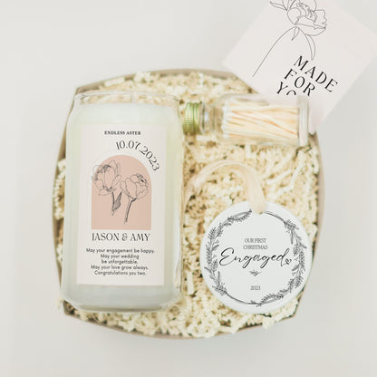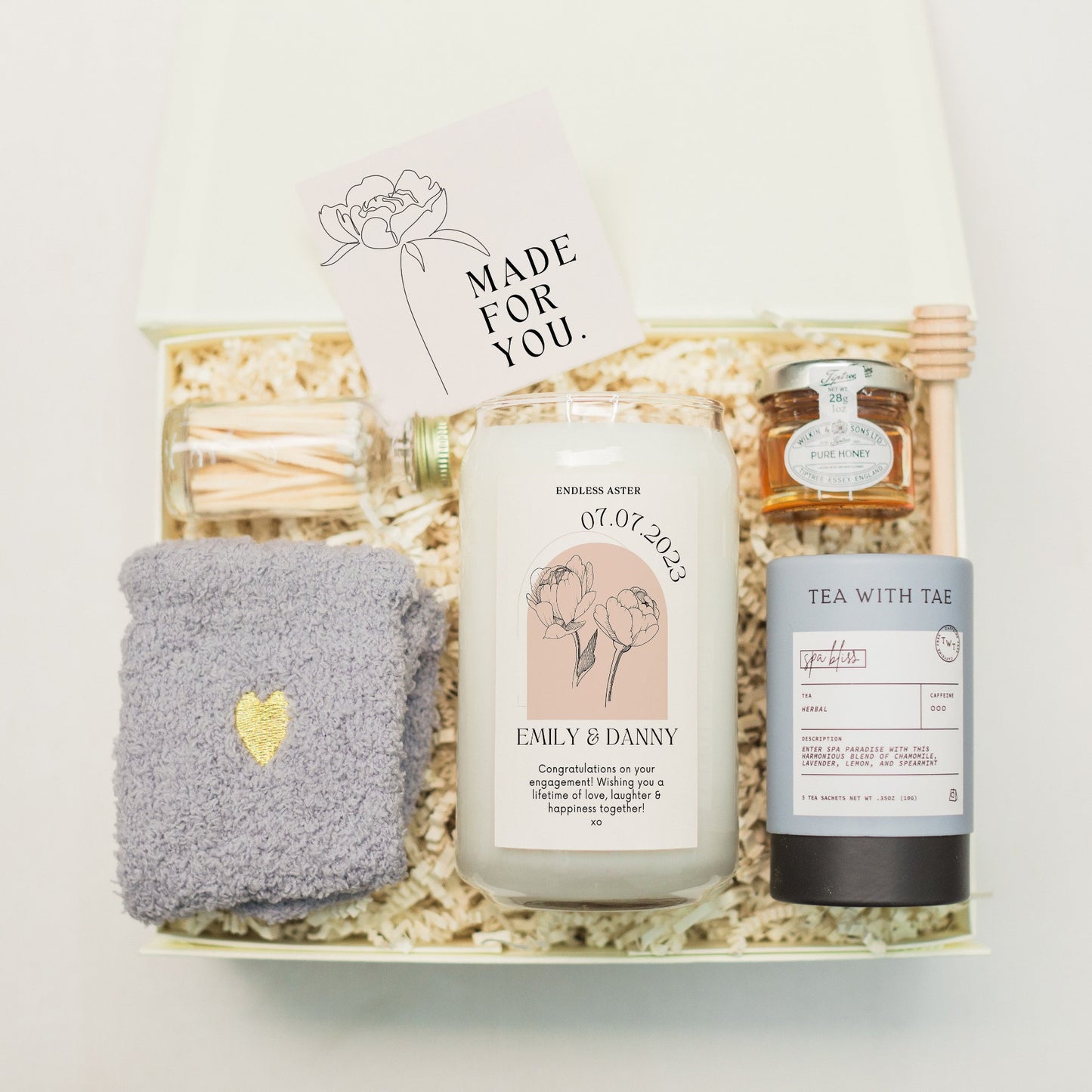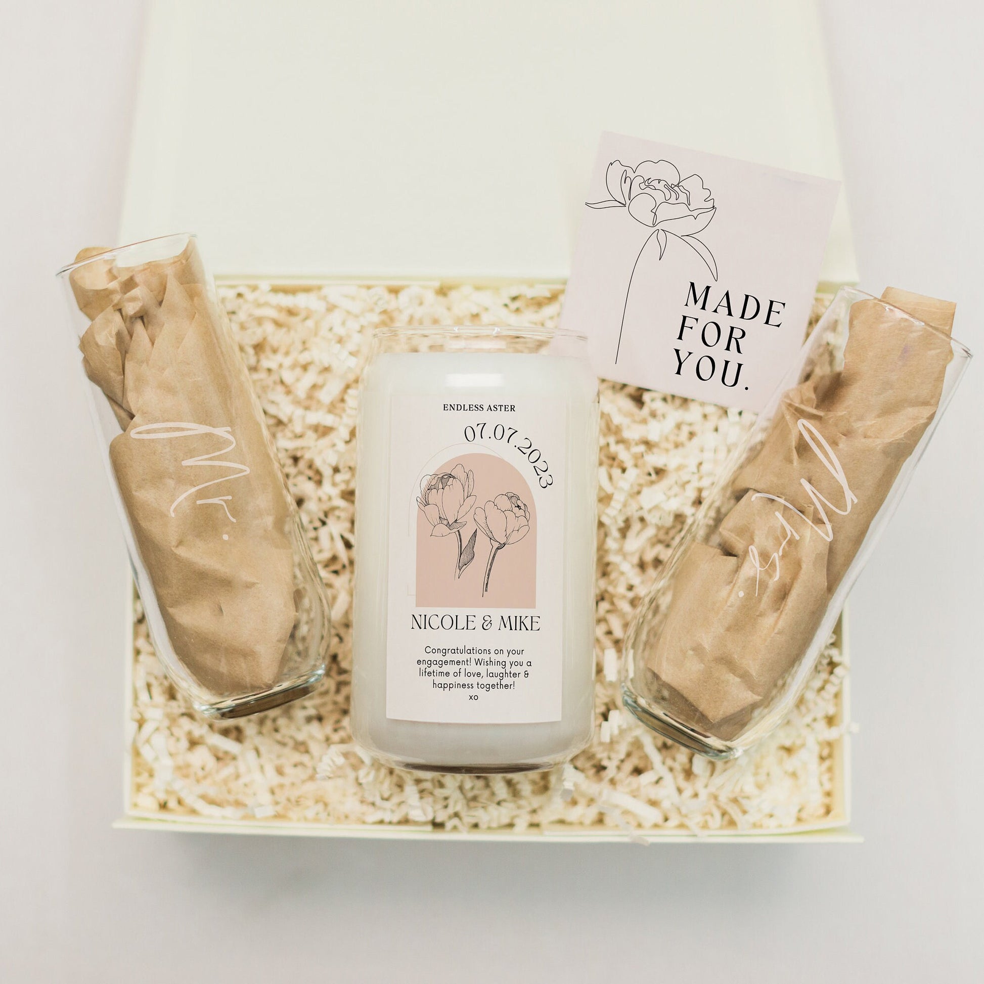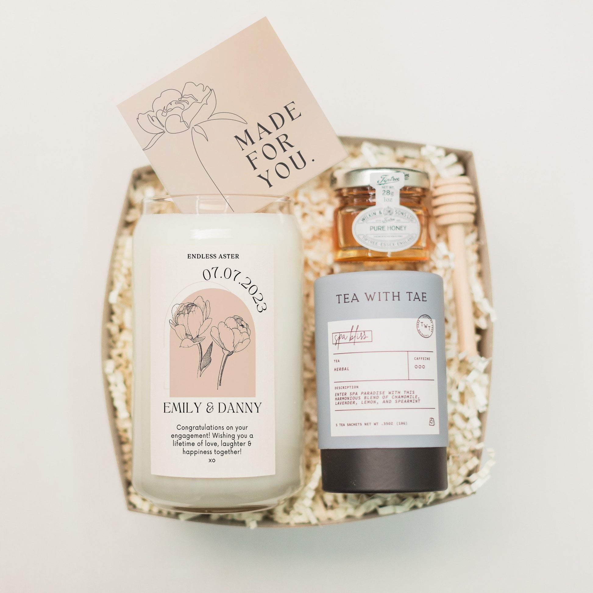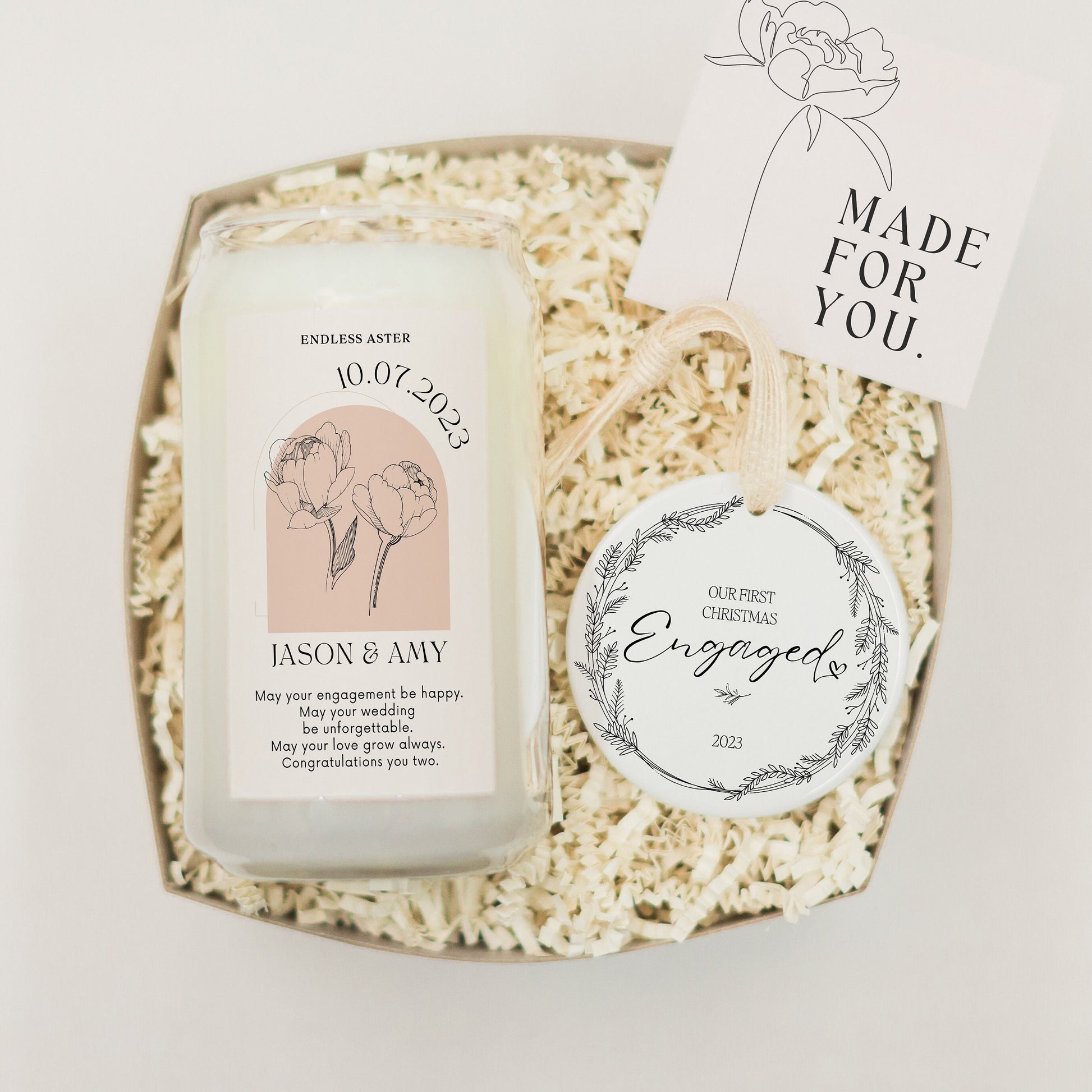 Send the most thoughtful gift to your favorite couple with this personalized candle featuring their names, engagement date, and a sweet message from you. Sure to put a smile on their faces, this candle is perfect for the couple who has everything. Add safety matches, a delicious chocolate bar, a cozy tea set, champagne flutes or shot glasses for an extra special touch.